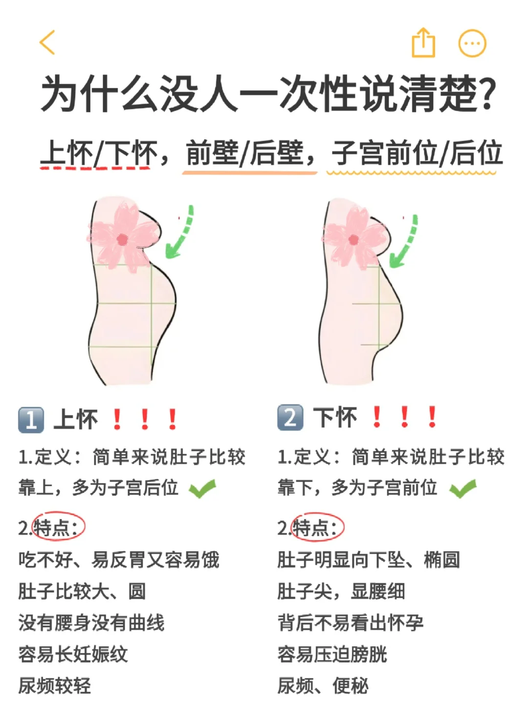 ⭕上怀VS下怀✅上怀1.定义:简单来说肚子比较靠上,多为子宫后位2.特点:吃不好、易反胃又容易饿;肚子比较大、圆没有腰身没有曲线;容易长妊娠纹;...[查看阅读]